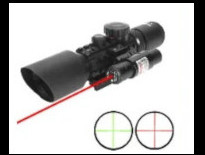 Basic 3-10 cross hair tactical scope with a red dot laser mounted on the side.
